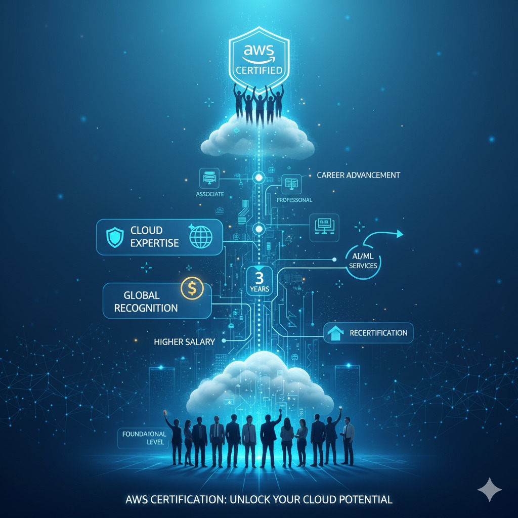 The AWS Certification validates your expertise in designing, deploying, and managing scalable applications on AWS. Whether you are an aspiring cloud practitioner, solutions architect, or advanced cloud professional, AWS credentials provide global recognition and career growth in one of the most sought-after domains of technology